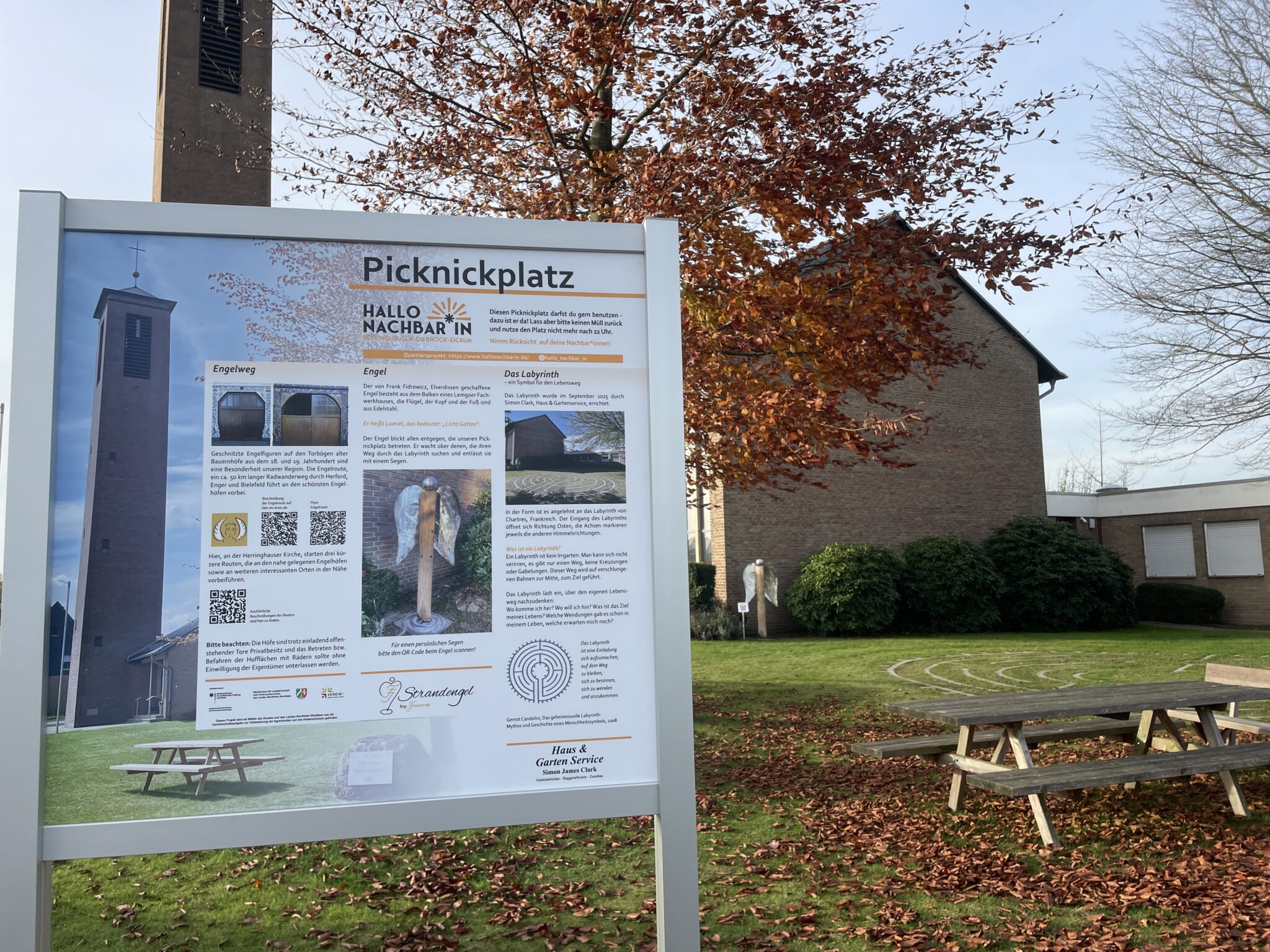 Entlang der histo­ri­schen „Engelhöfe“ in Herring­hausen, Diebrock, Eickum, Laar und Elver­dissen führt künftig ein beschil­derter Rundweg, der auf etwa 15 Kilometern Orte des Innehaltens, der Begegnung und des Austauschs verbindet. Start- und Mittel­punkt ist die Herring­hauser Kirche, an der zusätzlich ein begeh­bares Rasen­la­by­rinth entsteht – als Symbol für den Weg zu sich selbst, zur Gemein­schaft und zum Glauben.